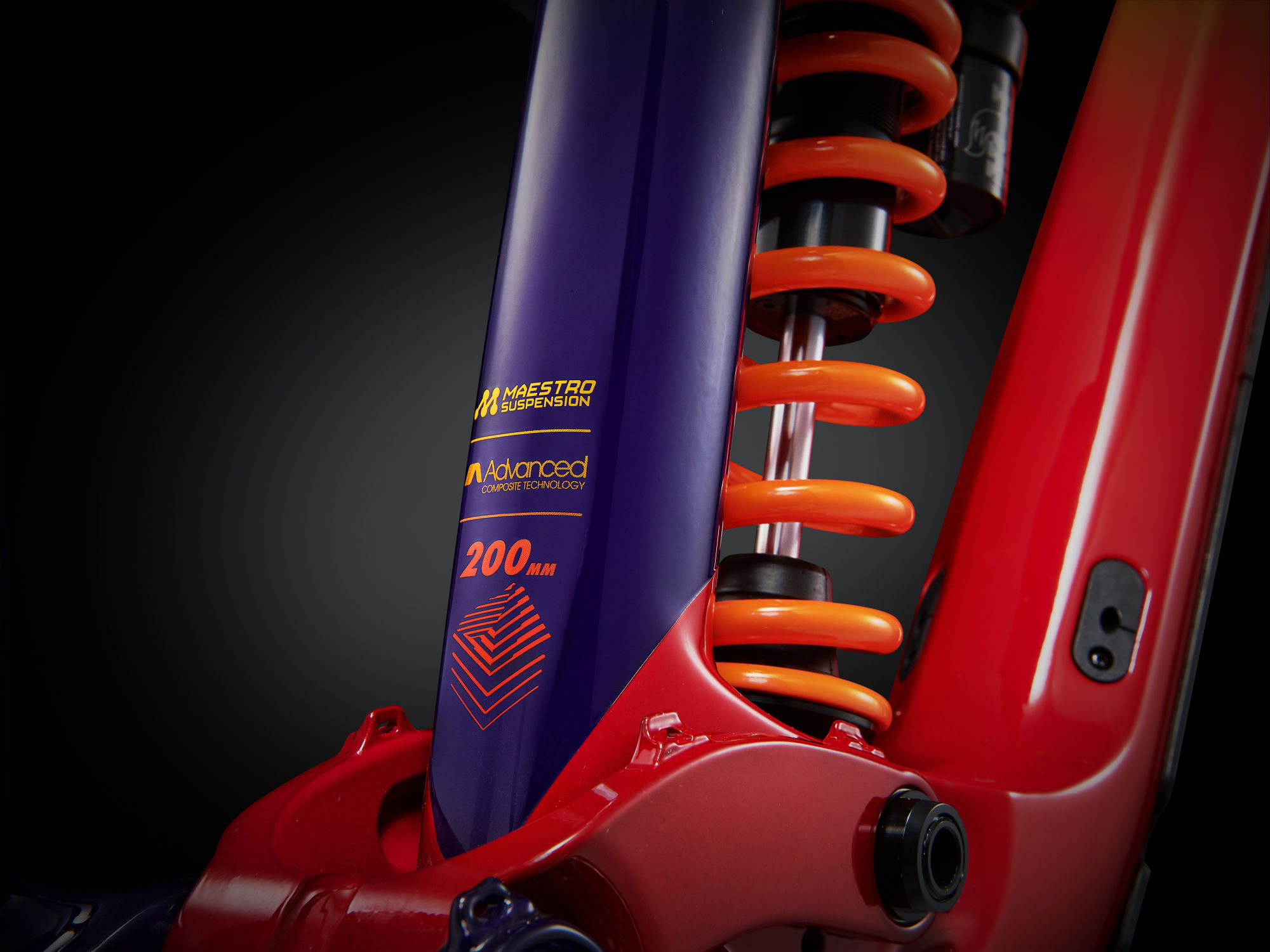 Cadre avant et arrière en composite Advanced-grade, suspension Maestro 200 mm, Flip Chip (headset, dropout DH et Maestro 3), axe traversant 12×157 mm, compatible roues arrière 27.5 ou 29 pouces.