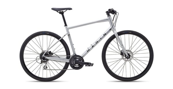 Vélo fitness / urbain hybride avec freins hydrauliques, idéal pour la ville, les trajets quotidiens et les balades confortables.